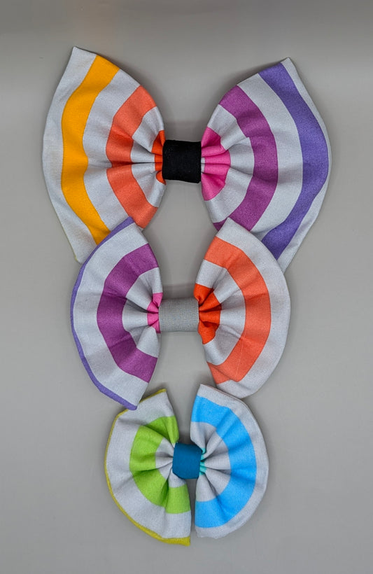 Bellie Bear Bows - Grey Rainbow Stripe
