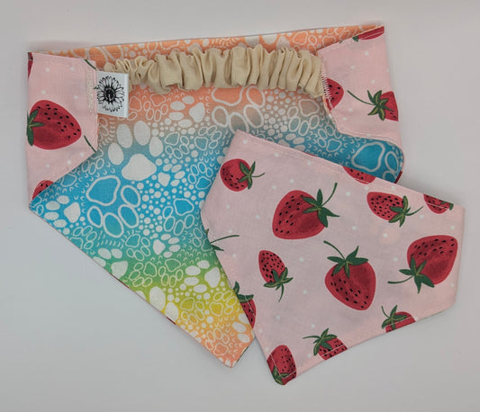 Strawberry and Paws Scrunchie Bandana-reversible